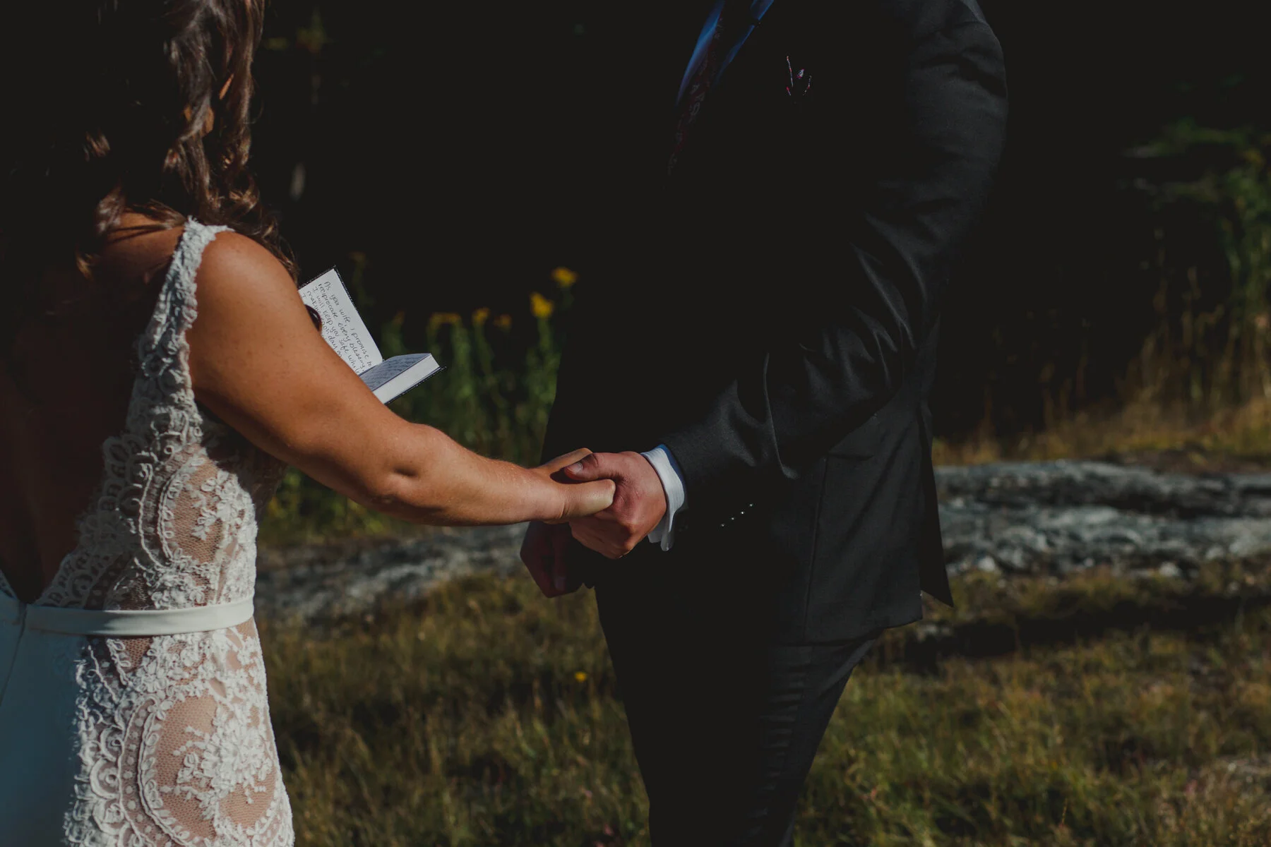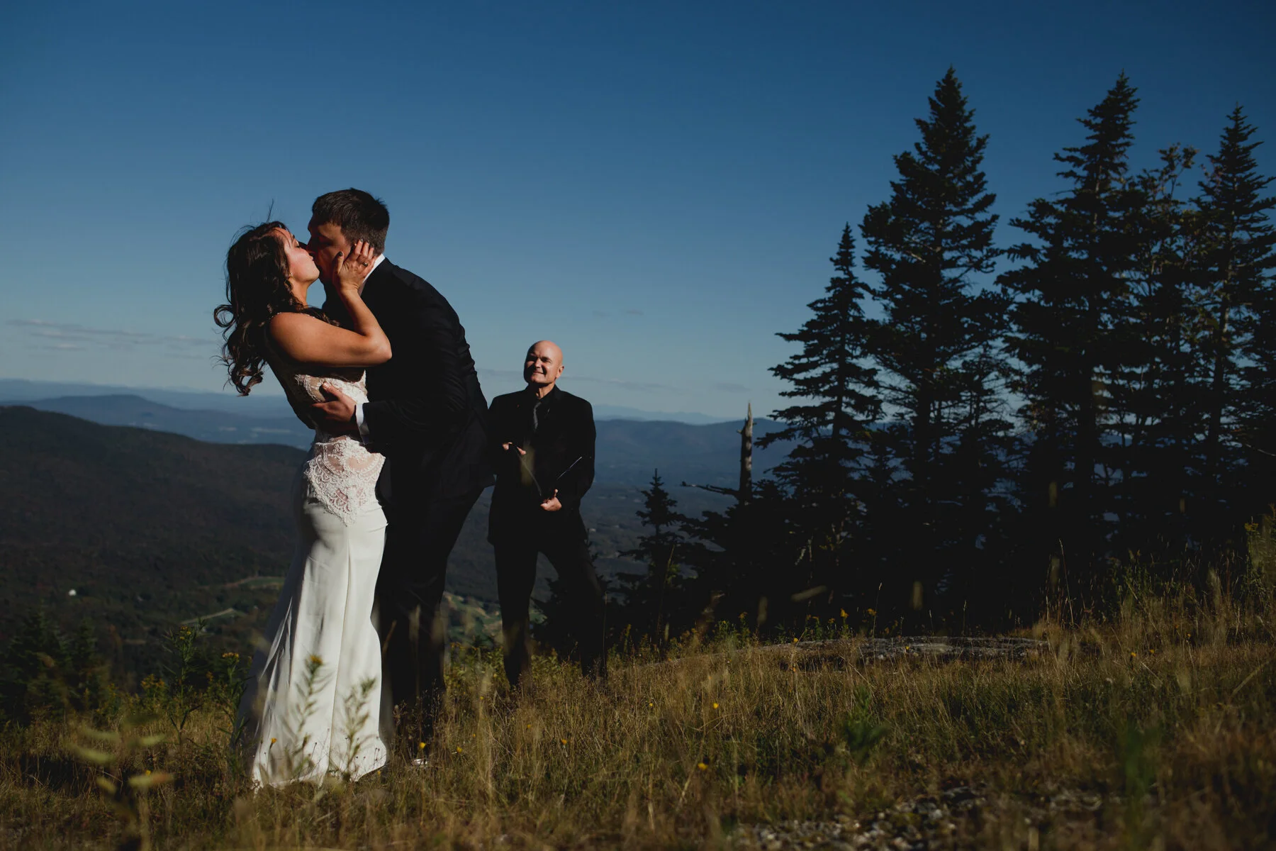 Looking at these photos and seeing how comfortable and happy Jess and Paul are, you’d have no idea that it was only 40 degrees at the top of Mount Mansfield on Sunday. You can thank the sunshine, whiskey, and the adrenaline rush of getting to marry your best friend that you’ve known for nearly half your life for that!